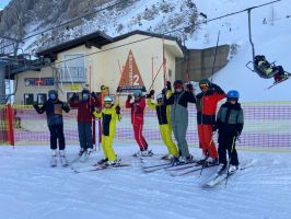Die Gruppe der Snowboard-Anfänger*innen hielt sich motiviert und tapfer auf den Brettern, gemeinsam meisterten sie den Zauberteppich und mehr. Die Skifahrer*innen teilten sich in schnelle und Genießergruppen, wobei das Skigebiet auf unterschiedliche Arten erkundet wurde. Dabei bezwangen die schnelleren Gruppen unter anderem schwarze und auch Buckelpisten, und eroberten Obertauern sogar mit einem Tagesausflug und Lunchpaket. Die Genißergruppen hielten sich vorwiegend auf blauen und roten Pisten und erfreuten sich an den sonnigen Tagen an dem überwältigenden Ausblick auf die Berge.