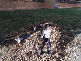 ... von Laub ein Highlight, wobei anschließend Sprünge in den Laubhaufen und das Vergraben im Laub nicht fehlen durften.