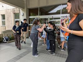 ... die japanische Kultur und Natur anschaulich erfahren konnten und auch die Kulinarik kam nicht zu kurz. Am Vormittag waren wir meistens in den verschiedenen Schulen der Stadtgemeinde zu Gast, während am Nachmittag mit einem Privatbus Sehenswürdigkeiten und kleine Museen besucht wurden. Am letzten gemeinsamen Abend gab es eine große Feier mit der ganzen Prominenz, wo wir wir traditionell japanisch gekleidet wurden, ein mehrgängiges Menü serviert bekamen und einen regionalen Tanz aufgeführt haben. Jeder Schüler wurde einer japanischen Gastfamilie zugeteilt, die für uns gut gesorgt haben, einzig die Kommunikation war mangels guter Englischkenntnisse oft etwas schwierig.  Am Wochenende waren alle alleine mit ihrer jeweiligen Familie unterwegs, jedoch war die Auswahl an Aktivitäten aufgrund des regnerischen Wetters etwas eingeschränkt. Der letzte Tag wurde nach einer etwa dreistündigen Fahrt mit dem japanischen Hochgeschwindigkeitszug in Tokyo verbracht, wo wir neben dem Skytree (einem der höchsten Gebäude der Welt) auch das Touristenviertel  Asakusa und die bekannte Shibuya-Kreuzung besuchten, ehe wir nach einer kurzen Nacht im Hotel wieder den 14-stündigen Rückflug antraten.