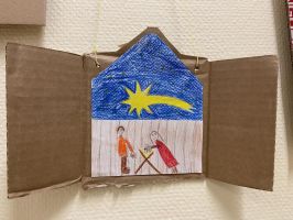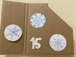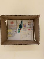 SchülerInnen der Unterstufe zeichneten heuer wieder weihnachtliche Motive für den Adventkalender. Für die Gestaltung wurden Verpackungen aus dem Schulbereich verwendet.