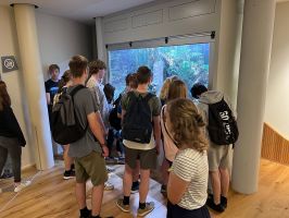 Am Mittwoch statteten wir dem Haus der Wildnis in Lunz am See einen Besuch ab. Das erst letztes Jahr eröffnete Museum lehrte uns viel über das schützenswerte Wildnisgebiet Dürrenstein und über die Gefahren durch den Klimawandel. Zudem konnte man sich mit den VR-Brillen wie ein Waldkauz fühlen, der durch die Wildnis flog, wobei es hier gar nicht so einfach war, das Gleichgewicht zu halten.