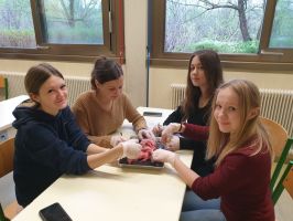 ... ein Herz im Inneren aufgebaut ist. In Teams durften die Schüler*innen ihr anatomisches Wissen und ihre Sezierkünste unter Beweis stellen. Denis Jovic hat mit seinen eleganten Sezierfähigkeiten überzeugen können. Er eignet sich somit perfekt für eine chirurgische Ausbildung. Er ist sozusagen ein „Aufschneider“.