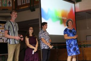 Es wurde ein Einblick in das aktuelle schulische Angebot mit Beiträgen von den Jüngsten der 1. Klassen bis zu Präsentationen über unsere Wahlmodule in der Oberstufe gegeben. Selbstverständlich durfte bei einer Jubiläumsveranstaltung aber auch ein kurzer historischer Rückblick nicht fehlen. Und schließlich kamen in einer Interviewrunde am Podium einige Personen zu Wort, die ihre Meinung zum Gymnasium Berndorf äußerten.