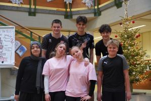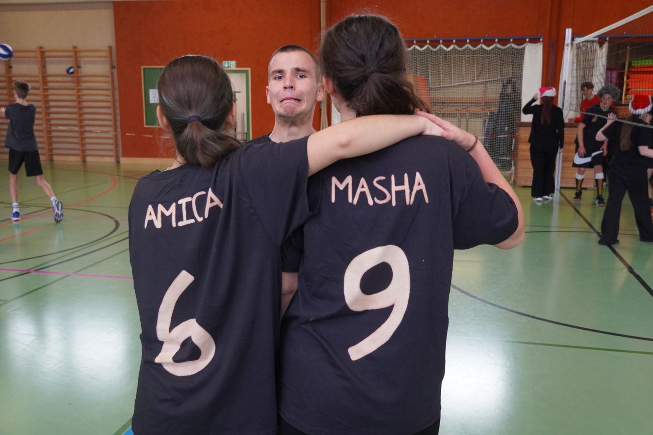 Stark präsentierten sich auch die beiden Teams aus den 7. Klassen „Volleymunks“ und „Santa’s Squad“, die beide ihre Vorrundengruppen gewinnen konnten. Für die „Volleymunks“ reichte es bis ins Finale, dort war allerdings dann Endstation und „Santa’s Squad“ musste sich im kleine Finale „We’re perfect“, die somit den 3. Platz aus Vorjahr wiederholten, geschlagen geben.