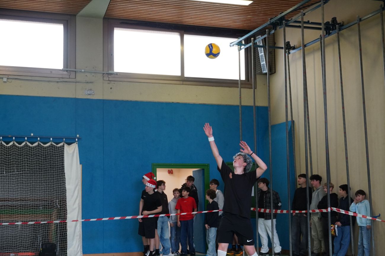 Das traditionelle Weihnachtsvolleyballturnier der Oberstufe wurde dieses Jahr am vorletzten Unterrichtstag vor den Weihnachtsferien ausgetragen. Wie im Vorjahr haben wieder 10 Mannschaften für dieses Kräftemessen genannt. Aus jeder Oberstufenklasse jeweils 2 Teams, eine Unterstufenburschenmannschaft und natürlich die „Körperwelten reloaded“ aus dem Konferenzzimmer.
