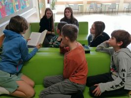 In Gruppen wurden an verschiedenen gemütlichen Plätzen unserer Schule, auf den Sofas, im Hof und in der Bibliothek, zunächst Märchen vorgelesen und besprochen. Dann galt es, gut vorbereitete kreative Aufgaben zu lösen, sei es Theaterspielen, Zeichnen, Rätsel lösen oder ein Kahoot zu gewinnen.
