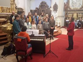Gestaltet wurde der Gottesdienst von Prof. Perkonigg, mit Unterstützung unseres Chores – unter der Leitung von Prof. Sounble und Prof Zehetner – sowie einzelner Schülerinnen und Schüler, die durch Texte und Fürbitten zum Gelingen der Feier beitrugen. Im Mittelpunkt des Gottesdienstes stand in diesem Jahr die symbolträchtige Handlung der Fußwaschung, die Jesus am Abend vor seinem Tod an seinen Jüngern vollzog. In einer berührenden Darstellung wurde dieser Moment nachempfunden – ein Zeichen der Demut, Liebe und gelebten Nächstenliebe. Die Schülerinnen und Schüler wurden in der Ansprache von Prof. Perkonigg eingeladen, darüber nachzudenken, was es heute bedeutet, einander zu dienen und auf Augenhöhe zu begegnen.