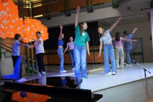Der Schulchor eröffnete den Abend. Danach folgten Highlights einzelner Musiker/innen vom Harfen-Solo bis zur Stubenmusi. Besonders beschwingt ging es weiter mit der Tanzgruppe der Schule, die ein Medley mit Liedern des European Song Contests in Bewegung umsetzte. Den letzten Teil des Programms gestalteten Schüler/innen des „Kreativen Kleeblatts“, einer besonderen unverbindlichen Übung für die 1. Klassen, bei der das kreative Potential der Schüler/innen durch Musik, bildnerisches Gestalten und Bewegung gefördert wird.