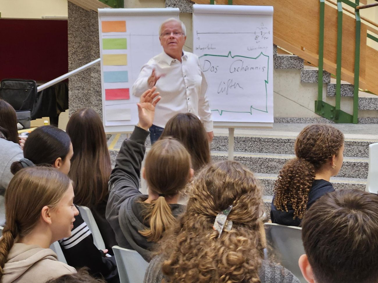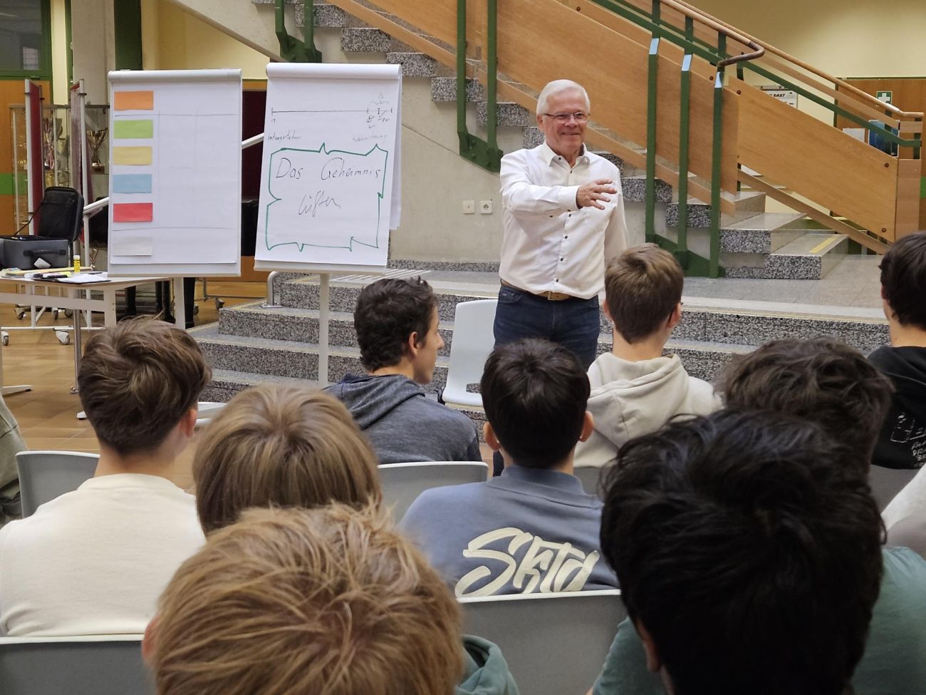 Schon nach kurzer Zeit war klar: Hier geht es nicht um theoretische Vorträge, sondern um das aktive Erleben von Kommunikation. Mit gruppen- und klassenübergreifenden Übungen, spannenden Impulsen und einer Prise Humor gelang es Herrn Schmidt, die Jugendlichen zu fesseln und zum Mitdenken anzuregen.