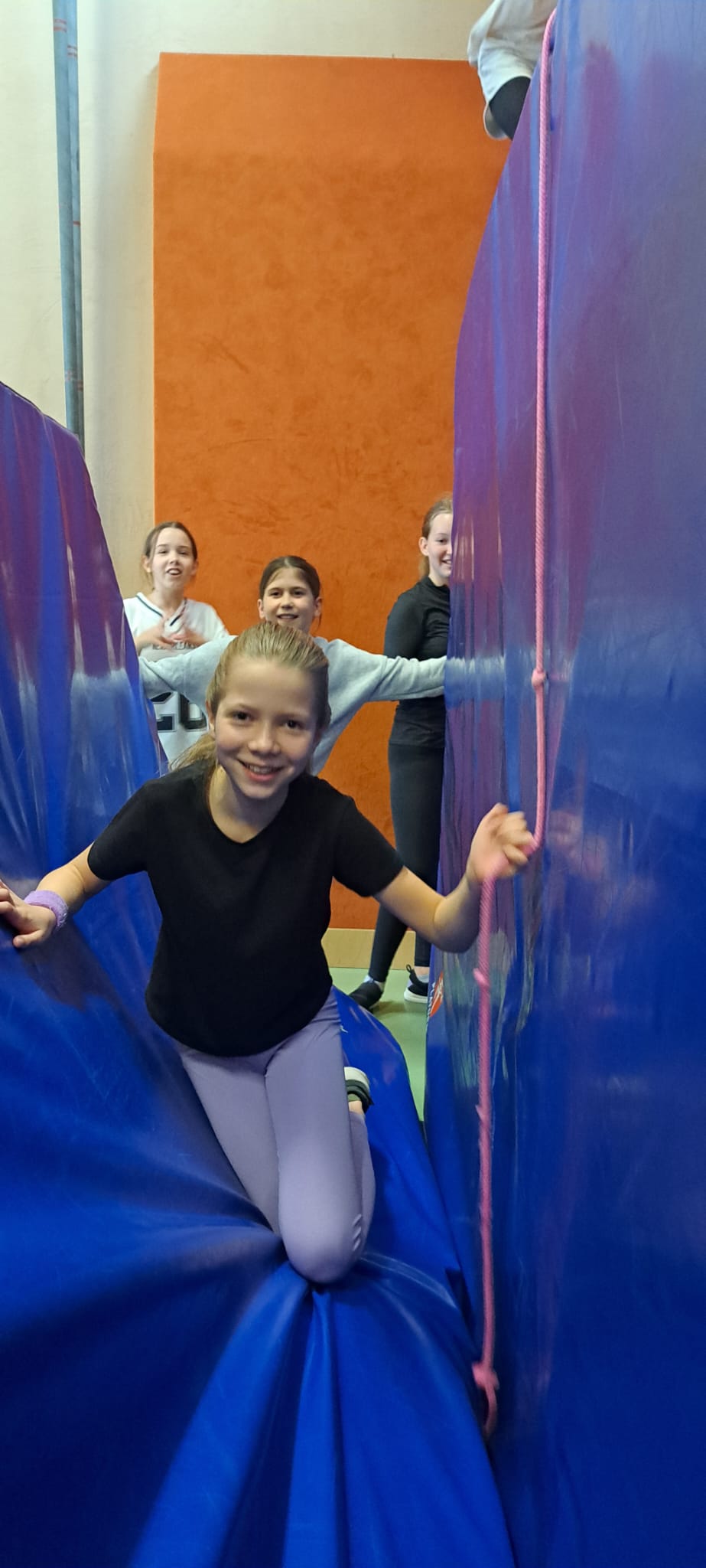 Unter dem Motto „Mut tut gut“ haben wir gelernt, wie man Risiken nicht vermeidet, sondern lernten damit umzugehen. Der Turnsaal verwandelte sich in einen Erlebnispark mit vielen verschiedenen Stationen. Jede Station hatte ein eigenes Hindernis, welches zu bewältigen war.