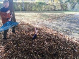 ... von Laub ein Highlight, wobei anschließend Sprünge in den Laubhaufen und das Vergraben im Laub nicht fehlen durften.