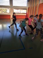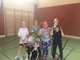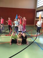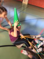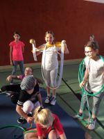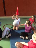 In der BSP-Stunde am 18.12. ist Kreativität gefragt. In weihnachtlichen Verkleidungen mit Utensilien des Sportunterrichts gilt es die „Geschenke" vom Nordpol auf der einen Seite des Turnsaals in Form von „Lauf“staffeln ins Dorf auf der anderen Seite des Turnsaals zu transportieren.
