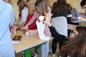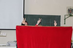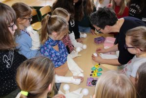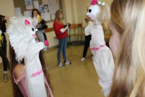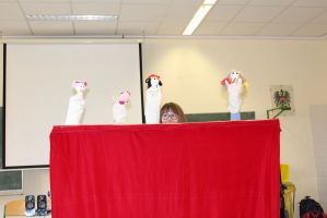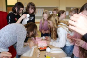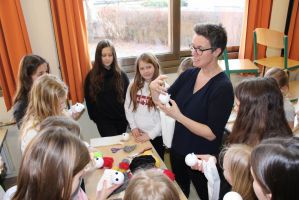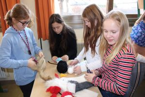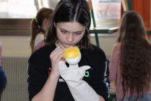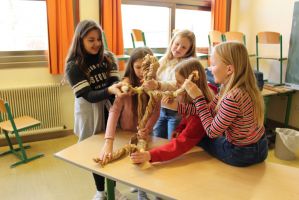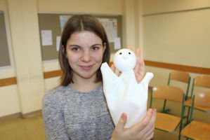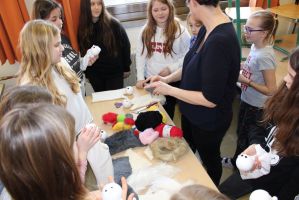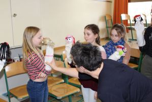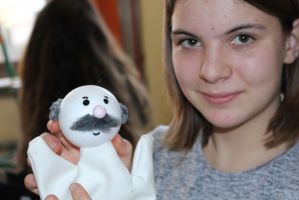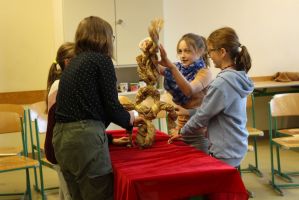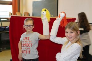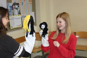 Professionell angeleitet und betreut wurden sie dabei von der freischaffenden Künstlerin und Leiterin des Theaters Moment in Grieskirchen Ruth Humer. Zunächst erlernten die Schülerinnen einige Grundsätze des Figurentheaterspiels beim Spiel mit der bloßen Hand. Anschließend wurden eigene Handpuppen gebastelt. Mit einfachen Materialien kreierten die Kinder ihre ganz persönliche Figur. Mit kleinen, selbst erfundenen Geschichten wurden sodann die Spielmöglichkeiten mit den Puppen ausgelotet. Am Nachmittag wurde mit alltäglichen Dingen experimentiert. Aus Malerkrepp wurde „Paperman“ und Abdeckfolien wurden zu fliegenden Monstern.