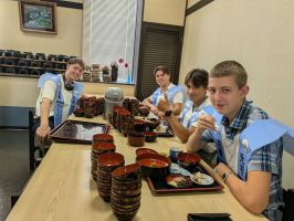 ... die japanische Kultur und Natur anschaulich erfahren konnten und auch die Kulinarik kam nicht zu kurz. Am Vormittag waren wir meistens in den verschiedenen Schulen der Stadtgemeinde zu Gast, während am Nachmittag mit einem Privatbus Sehenswürdigkeiten und kleine Museen besucht wurden. Am letzten gemeinsamen Abend gab es eine große Feier mit der ganzen Prominenz, wo wir wir traditionell japanisch gekleidet wurden, ein mehrgängiges Menü serviert bekamen und einen regionalen Tanz aufgeführt haben. Jeder Schüler wurde einer japanischen Gastfamilie zugeteilt, die für uns gut gesorgt haben, einzig die Kommunikation war mangels guter Englischkenntnisse oft etwas schwierig.  Am Wochenende waren alle alleine mit ihrer jeweiligen Familie unterwegs, jedoch war die Auswahl an Aktivitäten aufgrund des regnerischen Wetters etwas eingeschränkt. Der letzte Tag wurde nach einer etwa dreistündigen Fahrt mit dem japanischen Hochgeschwindigkeitszug in Tokyo verbracht, wo wir neben dem Skytree (einem der höchsten Gebäude der Welt) auch das Touristenviertel  Asakusa und die bekannte Shibuya-Kreuzung besuchten, ehe wir nach einer kurzen Nacht im Hotel wieder den 14-stündigen Rückflug antraten.