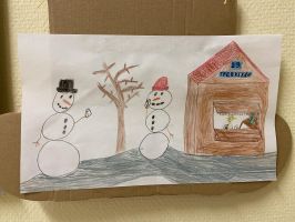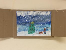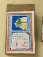SchülerInnen der Unterstufe zeichneten heuer wieder weihnachtliche Motive für den Adventkalender. Für die Gestaltung wurden Verpackungen aus dem Schulbereich verwendet.