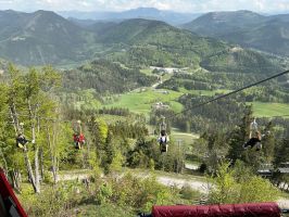 Gleich zu Beginn der Woche unternahmen wir eine Wanderung auf das Hennesteck (ca. 1300 m). Der sehr steile Aufstieg wurde mit einer grandiosen Aussicht belohnt. Mit der Zipline “Annaberg“ sausten wir hinab ins Tal. Das kostete uns am Anfang etwas Überwindung, da man ja immerhin mit teilweise über 100 km/h hinunterbrauste.