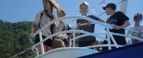 So besuchten wir den Pyramidenkogel, einen Waldseilklettergarten, die Stadt Klagenfurt zum Shoppen und auch mit Infos zum Lindwurm von Prof. Gruber. Weiter ging es zur Greifvogelschau nach Landskron und einer Schifffahrt über den Ossiachersee. Wir fanden auch Zeit, um das Strandbad Längsee und das Promenadenbad in Pörtschach zu erkunden.