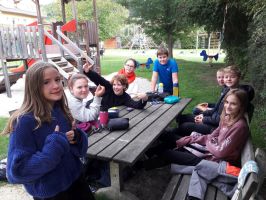 Nach diesem Erlebnis spazierten wir durch Wald und Wiese in den Ort, wo wir auf einem Spielplatz eine Pause machten. Zum Schluss fuhren wir wieder mit dem eigens gemieteten Bus zur Schule zurück. Es war ein schöner Exkursionstag.