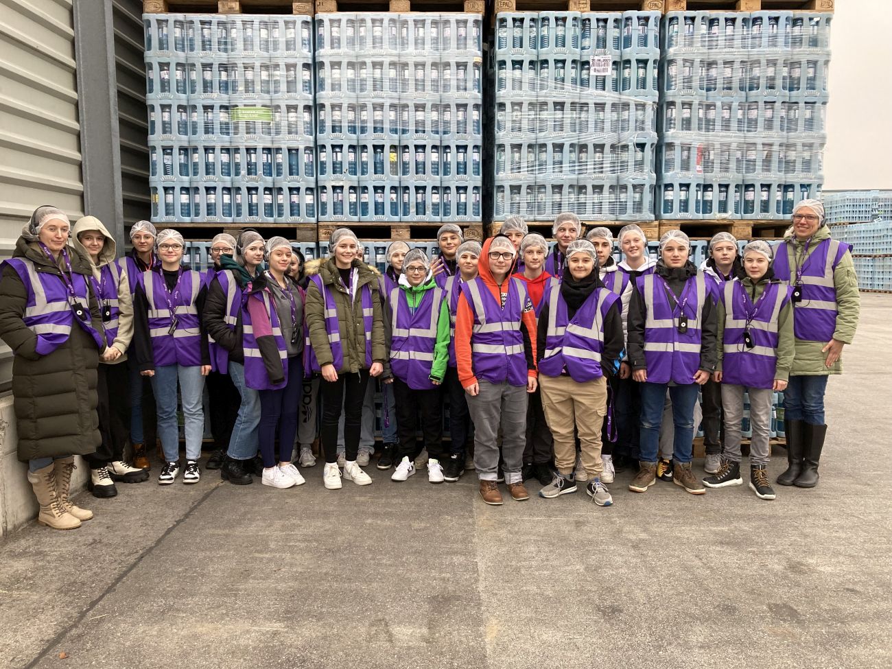 Lagerhallen, Spül- und Auffüllstationen waren ebenfalls zu besichtigen. Während der gesamten Führung musste ein Haarnetz getragen werden, um keine Verunreinigungen im Lebensmittelbetrieb zu hinterlassen. Wir wurden auch mit Kopfhörern ausgestattet, so konnten man den Erklärungen auch in lauten Bereichen, wie der Abfüllstation, folgen. Nach der Führung wurden wir über den Laborbetrieb bei Vöslauer informiert. Die Testung des Wassers auf seine Bestandteile wird extern einmal im Jahr durchgeführt, auf Mikroorganismen wird intern, täglich mehrfach, getestet, um den hohen Hygienestandards zu entsprechen. Alles in allem war es eine gelungene Exkursion, bei der die Schülerinnen und Schüler viel über einen Lebensmittelbetrieb und die Abläufe in dessen Labor erfahren konnten.