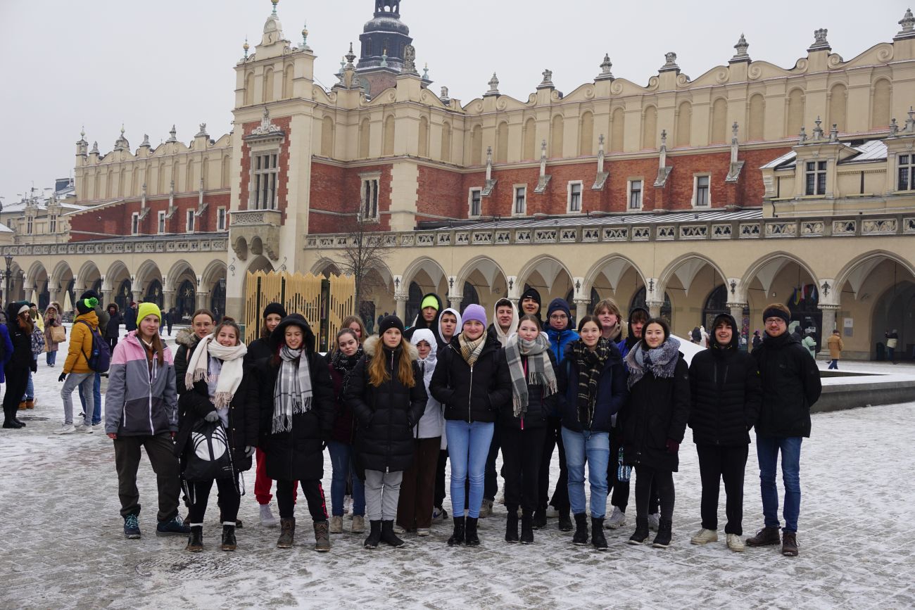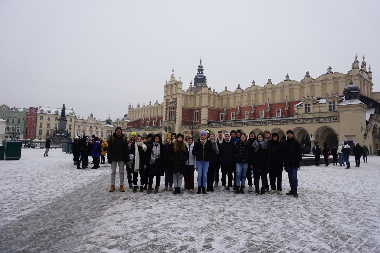 ... 21-köpfige Schüler*innengruppe hat sich auf den Weg nach Polen gemacht. Unmittelbar nach der Ankunft stand die Besichtigung der Fabrik Oskar Schindlers in Krakau auf dem Programm. Die zwei folgenden Tage fuhren wir dann nach Auschwitz bzw. Birkenau um zu versuchen, das Ausmaß der Gräuel und des unfassbaren, menschlichen Leides für uns greifbarer zu machen. Als Österreicher*innen sind wir uns unserer besonderen Verantwortung bewusst und die Worte des Auschwitz-Überlebenden Marian Turski - „Auschwitz ist nicht vom Himmel gefallen“ -, mahnen uns zur Wachsamkeit. Gleichzeitig verdeutlichen sie die Bedeutung der konsequenten Erinnerung.