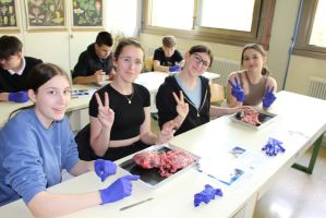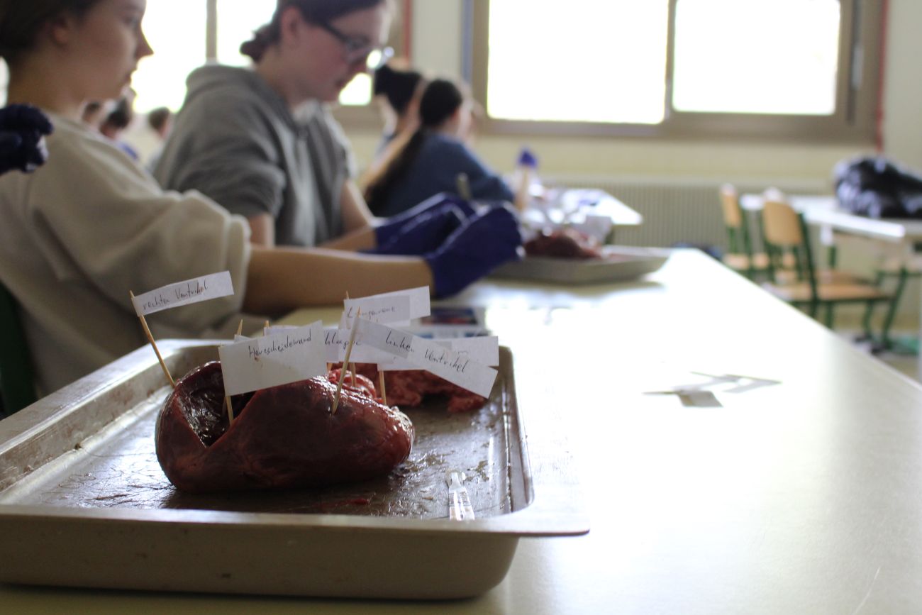 ... ein Herz im Inneren aufgebaut ist. In Teams durften die Schüler*innen ihr anatomisches Wissen und ihre Sezierkünste unter Beweis stellen. Denis Jovic hat mit seinen eleganten Sezierfähigkeiten überzeugen können. Er eignet sich somit perfekt für eine chirurgische Ausbildung. Er ist sozusagen ein „Aufschneider“.