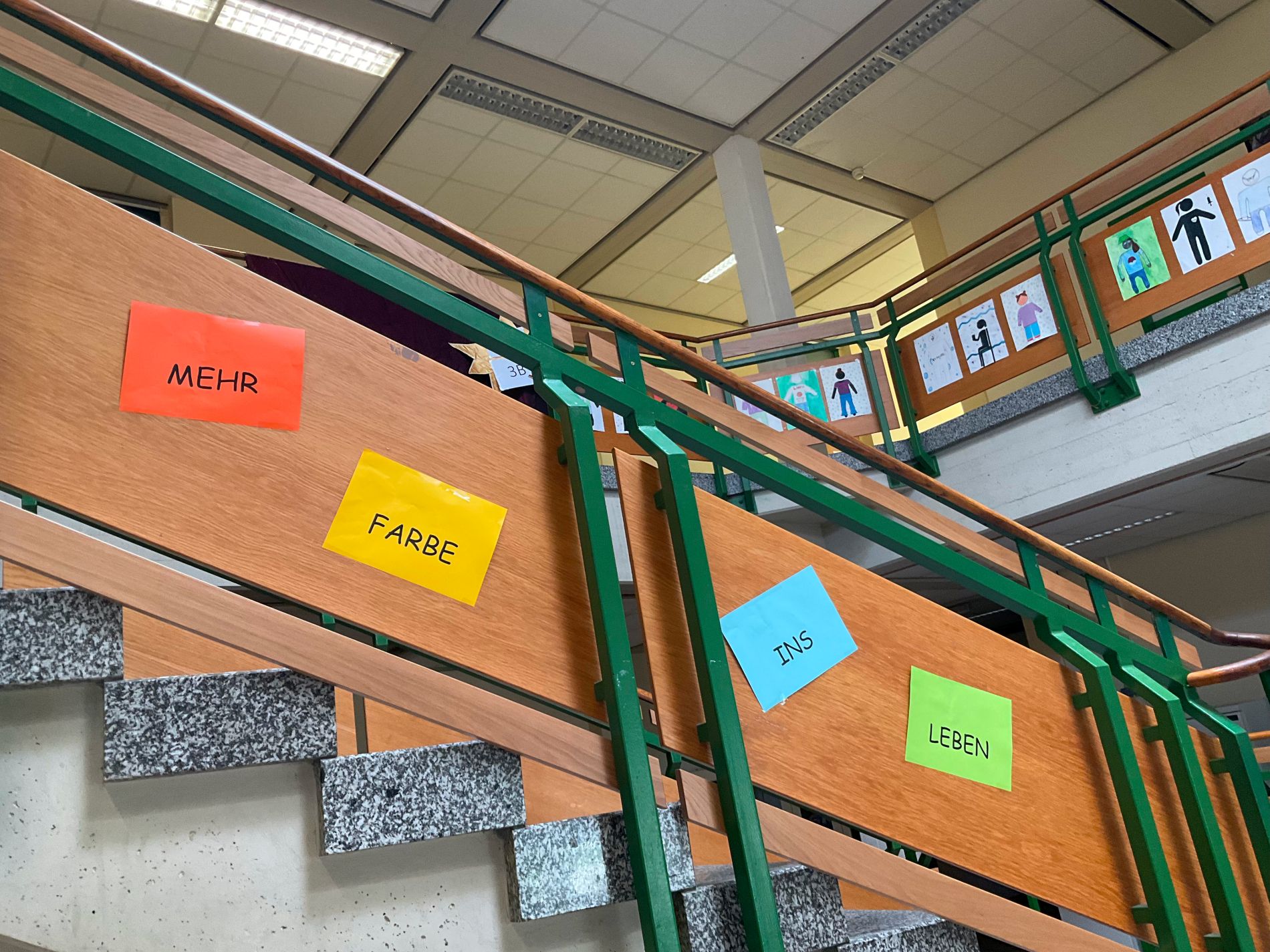 Die Projektwoche „Mehr Farbe ins Leben“ findet in der Zeit vom 22. bis 26.5.2023 statt. Den „optischen“ Rahmen, der im Aula-Bereich zu sehen ist, haben die 3. Klassen im BE-Unterricht gestaltet. Alle 1. und 2. Klassen bearbeiten in dieser Zeit im Deutschunterricht anhand von Texten, Filmen oder Ähnlichem das Thema „Diversität“. Die 4. Klassen widmen ...