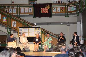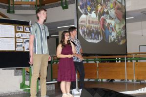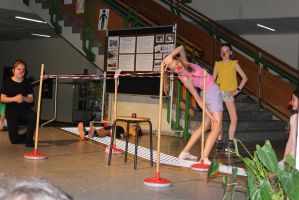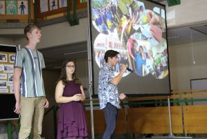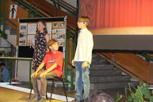 Es wurde ein Einblick in das aktuelle schulische Angebot mit Beiträgen von den Jüngsten der 1. Klassen bis zu Präsentationen über unsere Wahlmodule in der Oberstufe gegeben. Selbstverständlich durfte bei einer Jubiläumsveranstaltung aber auch ein kurzer historischer Rückblick nicht fehlen. Und schließlich kamen in einer Interviewrunde am Podium einige Personen zu Wort, die ihre Meinung zum Gymnasium Berndorf äußerten.