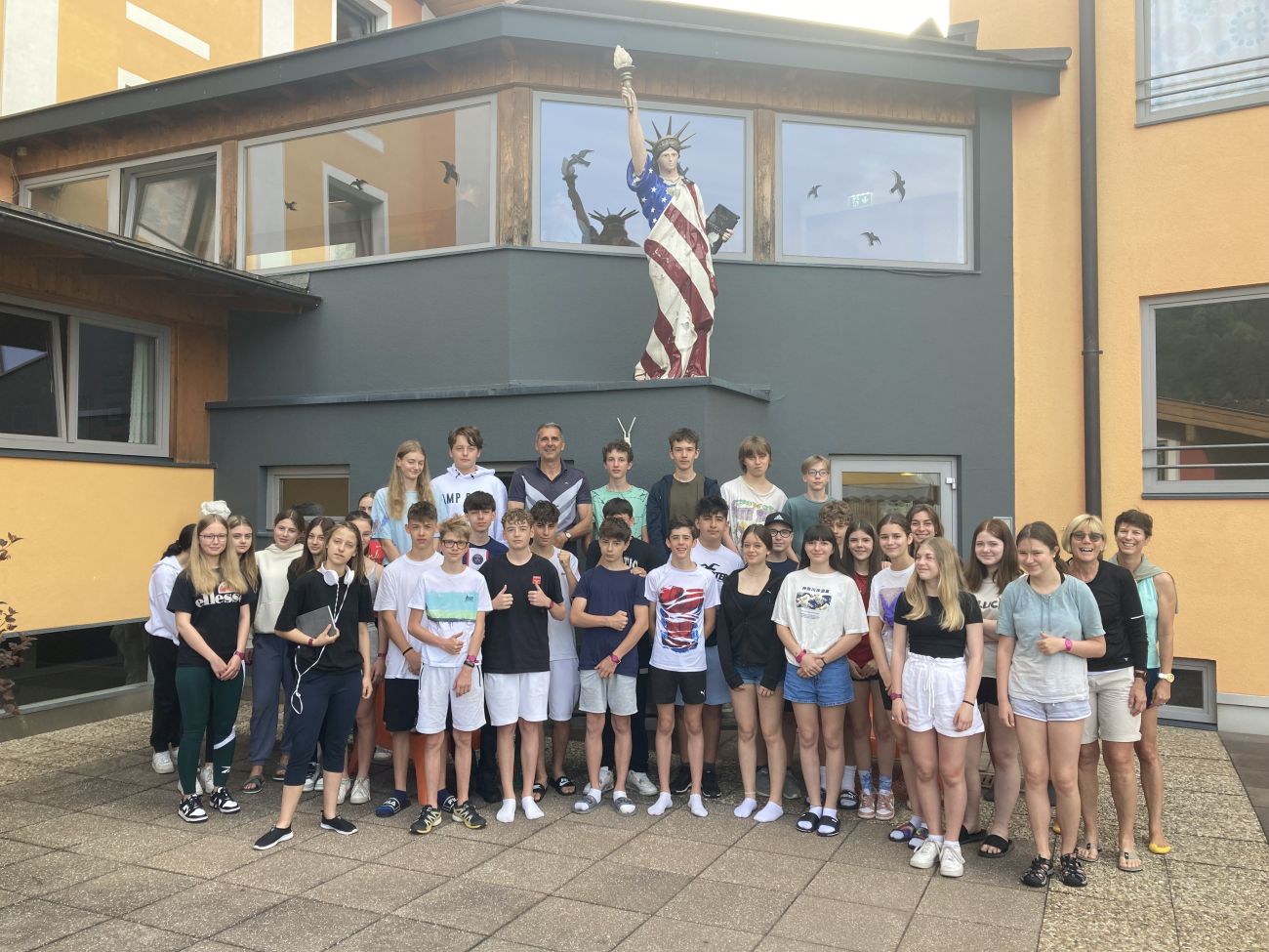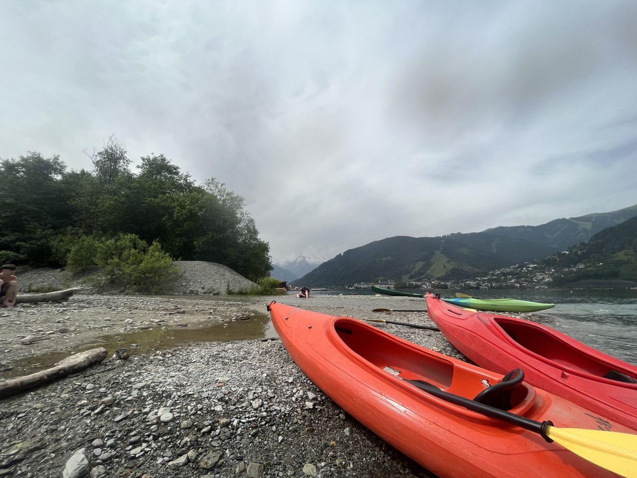 Wenn Engel reisen: Genau die Woche von 18. bis 23. Juni war strahlender Sonnenschein und genau in dieser Woche waren die 4. Klassen in Zell am See auf Sommersportwoche. Bei Sportarten wie Kajak, Surfen, Klettern, Tennis, Segeln, Biken und BeachVolleyball hatten alle unglaublich viel Spaß.