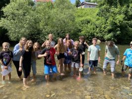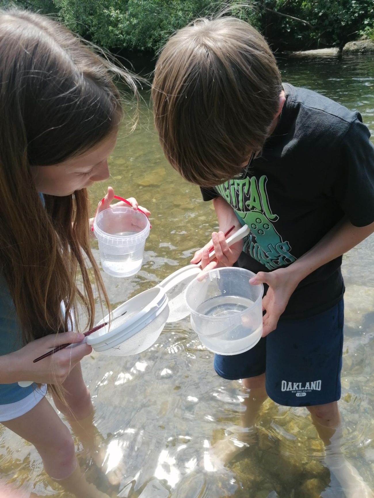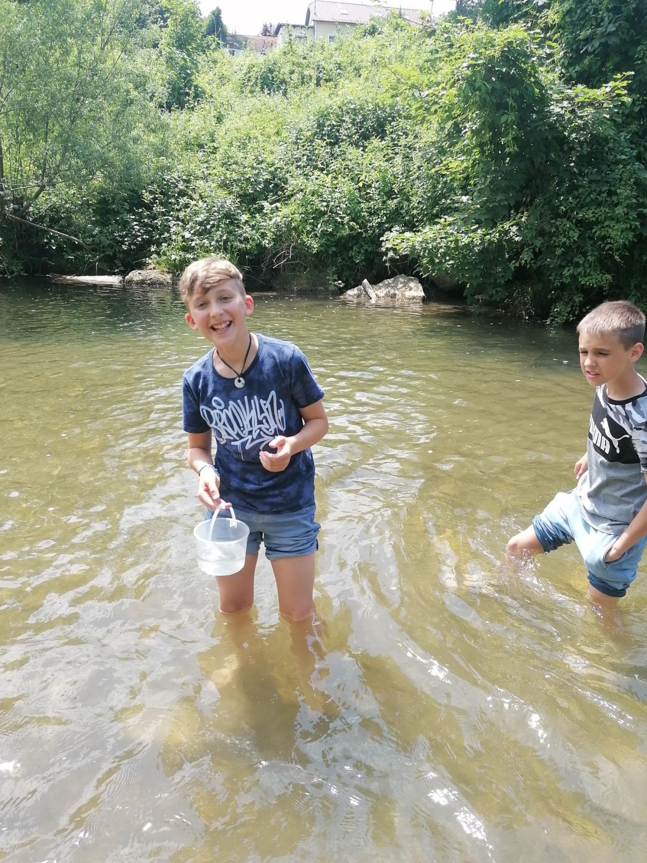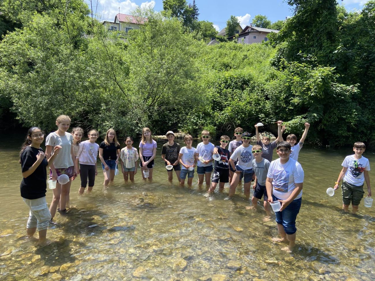 Um den SchülerInnen der 2. Klassen das Thema „Ökosystem Fluss“ näherzubringen, wurde der Unterricht bei bestem Wetter in die Triesting verlegt. Ausgestattet mit Sieben, Pinseln und kleinen Gefäßen suchten die SchülerInnen selbstständig nach diversen kleinen Tieren.