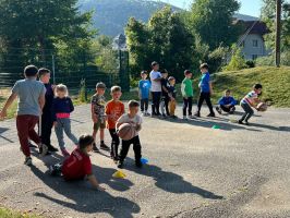 Durch die angebotenen Ballspiele wurden die Volksschulkinder in Hinblick auf Schnelligkeit, Geschicklichkeit, Wendigkeit und Reaktionsvermögen trainiert. Außerdem schulten sie Balltechnik, Ballgefühl, Team- und Mannschaftsgeist sowie Kooperation und Kommunikation. Natürlich durfte hier auch der Spaß nicht zu kurz kommen (wie auf den Fotos ersichtlich 😉).
