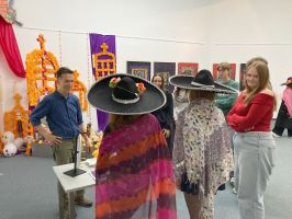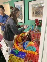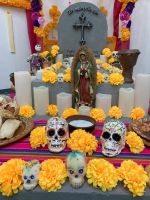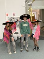 ... im praktischen Teil selbst etwas tun: Neben dem Schmücken des traditionellen Altars zum Gedenken an die Toten, konnten sich die Schüler:innen als Catrina verkleiden, calaveritas de azúcar (kleine Totenköpfe aus Zucker) verzieren und die typischen, orangen Blumen basteln. Einige versuchten ihr Glück am literarischen Glücksrad.