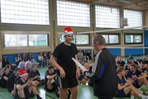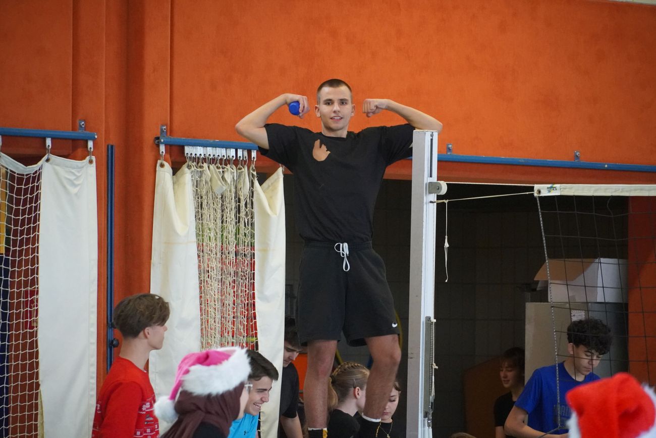 Das traditionelle Weihnachtsvolleyballturnier der Oberstufe wurde dieses Jahr am vorletzten Unterrichtstag vor den Weihnachtsferien ausgetragen. Wie im Vorjahr haben wieder 10 Mannschaften für dieses Kräftemessen genannt. Aus jeder Oberstufenklasse jeweils 2 Teams, eine Unterstufenburschenmannschaft und natürlich die „Körperwelten reloaded“ aus dem Konferenzzimmer.