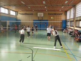 Im Semifinale schlug dann die Stunde der 7. Klassen. Zunächst schickte „Sur price“ die 6-Klassler in das Spiel um Platz 3 und im Anschluss schafften auch die „Buffalo Soldiers“ in einem emotionalen Match gegen die „Körperwelten“ den Einzug ins Finale. Das Endspiel gestaltete sich sehr ausgeglichen. Schlussendlich setzen sich die „Buffalo Sodiers“ in drei Sätzen (15:12; 13:15 und 15:9) verdient durch.