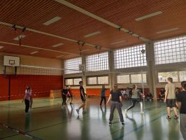 Das heurige Weihnachtsvolleyballturnier wurde aus organisatorischen Gründen in die Woche vor den Semesterferien verschoben und so fanden sich am Mittwoch, den 31.1.24 vierzehn Mannschaften zusammen, um das beste Oberstufenteam dieses Schuljahres zu ermitteln. Die „Körperwelten“ aus dem Konferenzzimmer hatten ebenfalls genannt und ließen es sich nicht nehmen, sich mit den besten Schülergruppen zu messen.