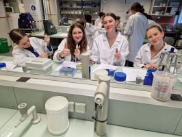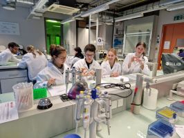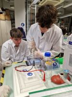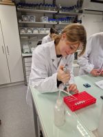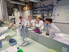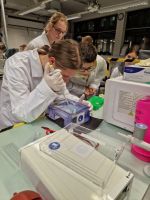 ... dann der Ausflug ins Vienna open lab. Dort konnten die Schülerinnen und Schüler die heute mitunter wichtigsten Spuren in einem echten Labor untersuchen: DNA. Dabei lernten sie zu pipettieren und PCR- sowie Gelelektrophorese-Apparaturen zu bedienen. All das angesammelte Wissen half letztendlich dabei, einen brisanten Abschlussfall aufzuklären.