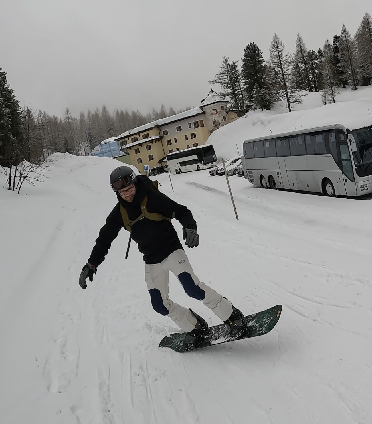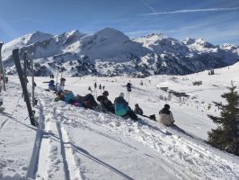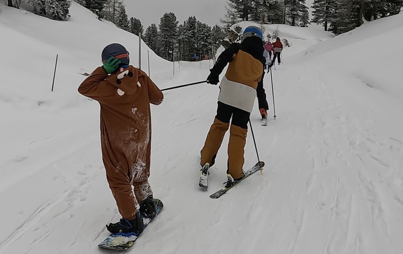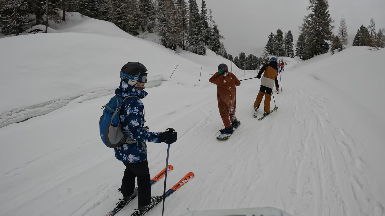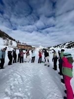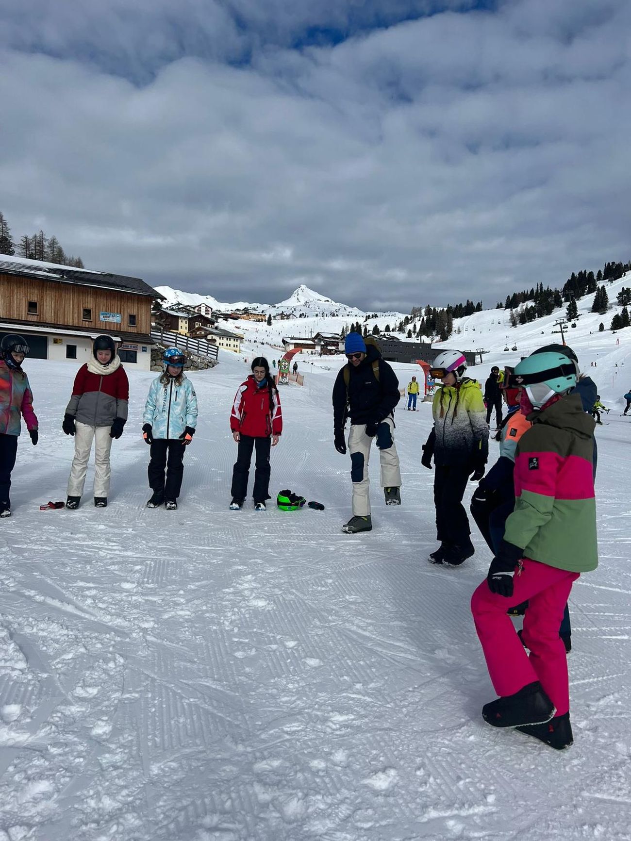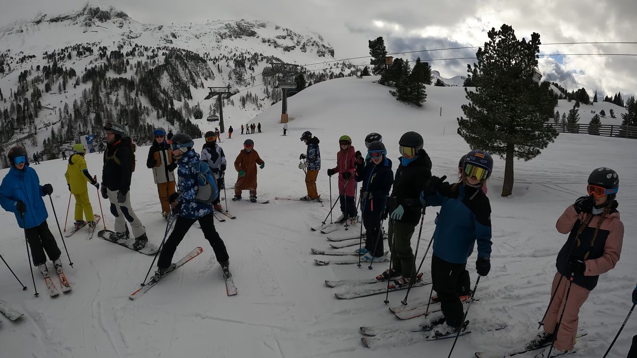 Die Gruppe der Snowboard-Anfänger*innen hielt sich motiviert und tapfer auf den Brettern, gemeinsam meisterten sie den Zauberteppich und mehr. Die Skifahrer*innen teilten sich in schnelle und Genießergruppen, wobei das Skigebiet auf unterschiedliche Arten erkundet wurde. Dabei bezwangen die schnelleren Gruppen unter anderem schwarze und auch Buckelpisten, und eroberten Obertauern sogar mit einem Tagesausflug und Lunchpaket. Die Genißergruppen hielten sich vorwiegend auf blauen und roten Pisten und erfreuten sich an den sonnigen Tagen an dem überwältigenden Ausblick auf die Berge.