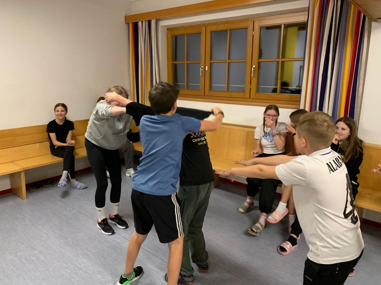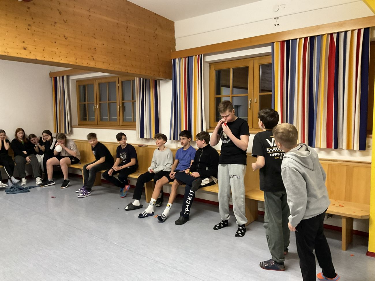 Abgerundet wurde die Wintersportwoche durch das Abendprogramm. Es wurde ein zweitägiger Klassenwettkampf in verschiedenen Disziplinen durchgeführt, es fanden ein Pub-Quiz und ein bunter Sketch- und Discoabend statt. Ein besonderes Highlight war mit Sicherheit das Nacht-Skifahren, zu dem sich eine Gruppe motivierter Schüler*innen nochmals auf die Piste wagte.
