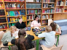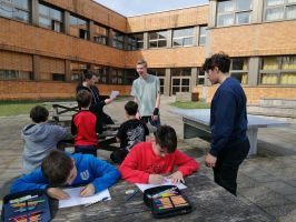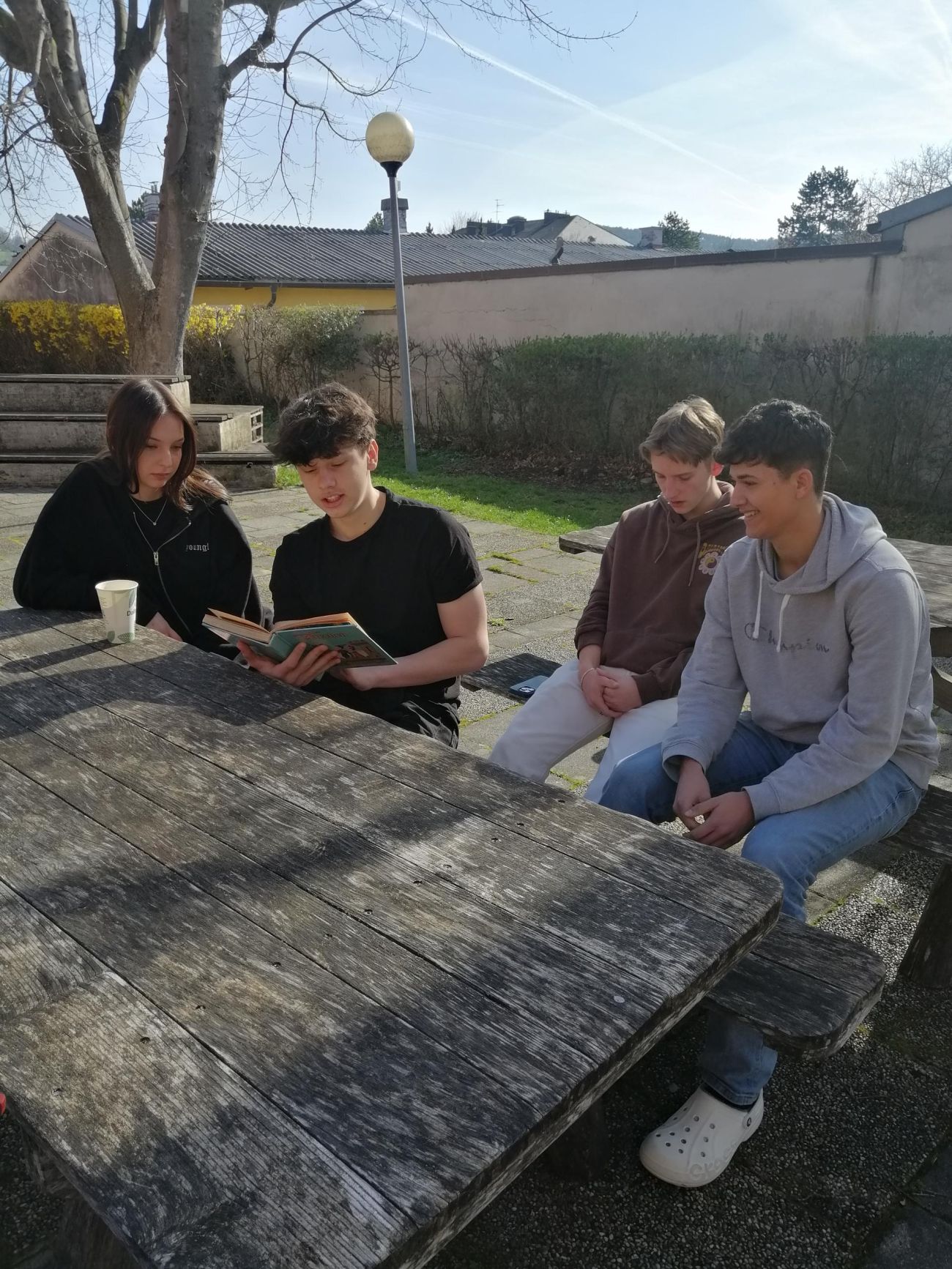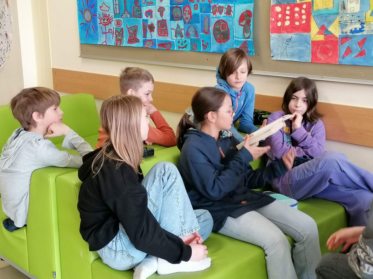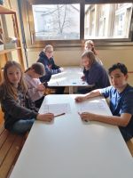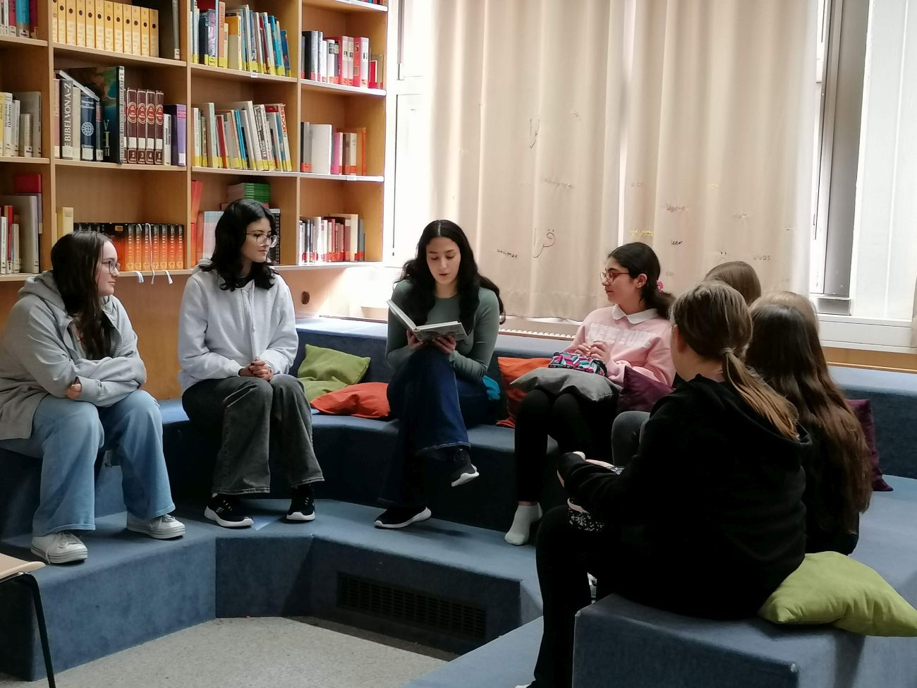 In Gruppen wurden an verschiedenen gemütlichen Plätzen unserer Schule, auf den Sofas, im Hof und in der Bibliothek, zunächst Märchen vorgelesen und besprochen. Dann galt es, gut vorbereitete kreative Aufgaben zu lösen, sei es Theaterspielen, Zeichnen, Rätsel lösen oder ein Kahoot zu gewinnen.