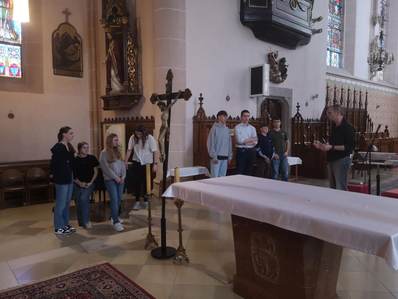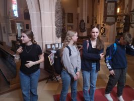 Kaplan Mark Eylitz und DI Manfred Ruttner führten in fachkundiger Manier durch die beiden Pfarrkirchen und die Schülerinnen und Schüler hatten die Möglichkeit, ihr erworbenes Wissen über Kirchenbau und Kirchengeschichte unter Beweis zu stellen.