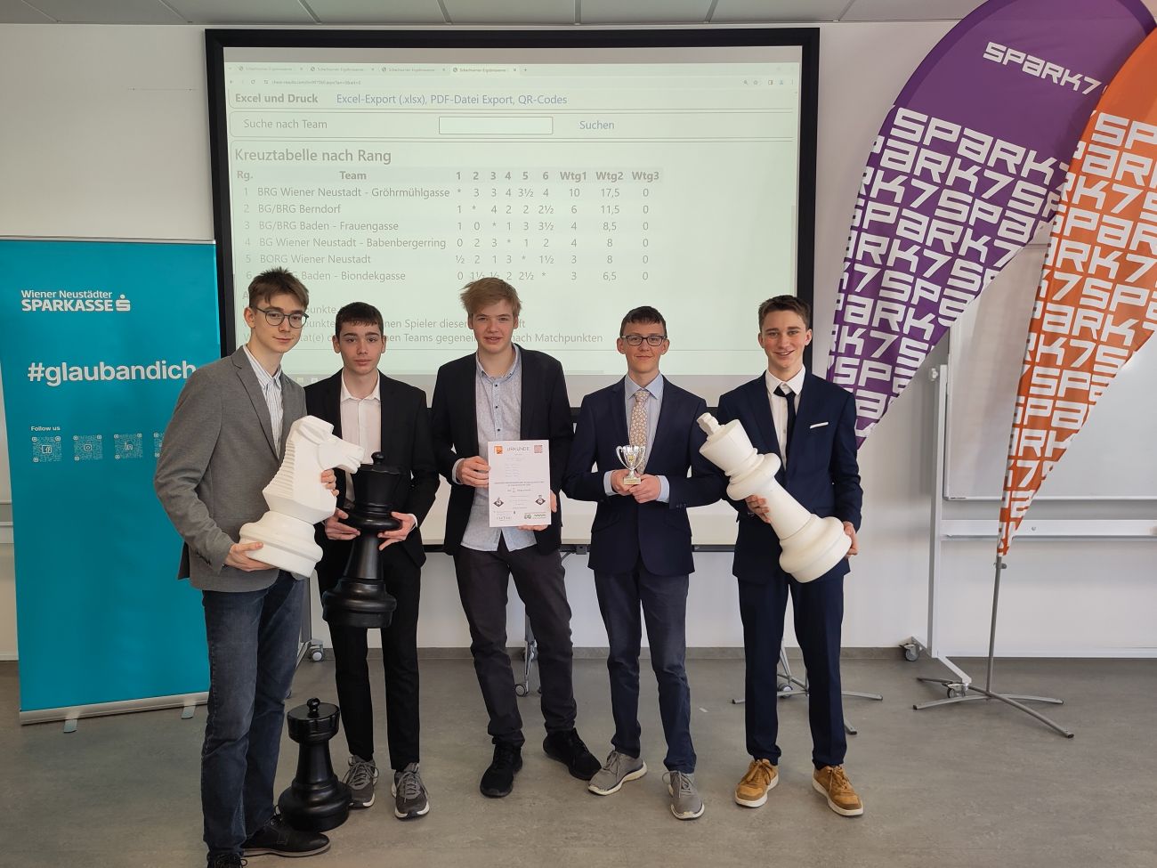 Die Unterstufe belegte den 6ten Platz und konnte sich leider nicht für das Landesfinale qualifizieren. Sie zeigten aber dennoch, dass sie bravourös Schachspiel können. Die Oberstufe erreichte den zweiten Platz und qualifizierte sich dadurch  für das Landesfinale. Am 11.04.2024 fuhr die Oberstufe nach St. Pölten zum Landesfinale. Sie erlangten den vierten Platz. Die Schüler sind hochmotiviert nächstes Jahr ihre tollen Leistungen noch zu verbessern.