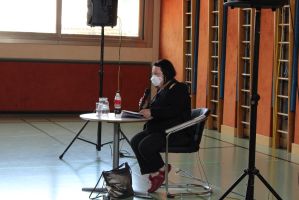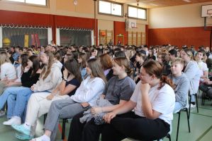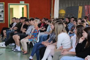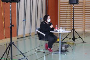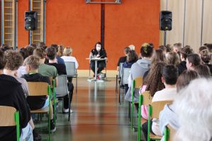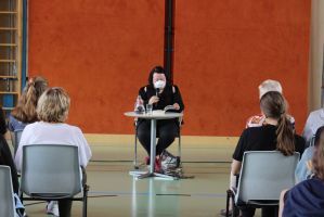 Im Anschluss wurde den versammelten Schülern und Schülerinnen die Gelegenheit gegeben, der Autorin Fragen zu stellen. Dabei wurden sehr interessante Themen besprochen: die Inspiration für das Schreiben, das Verlagswesen und darüber hinaus, wie man als Schriftsteller arbeitet und von Büchern leben kann.