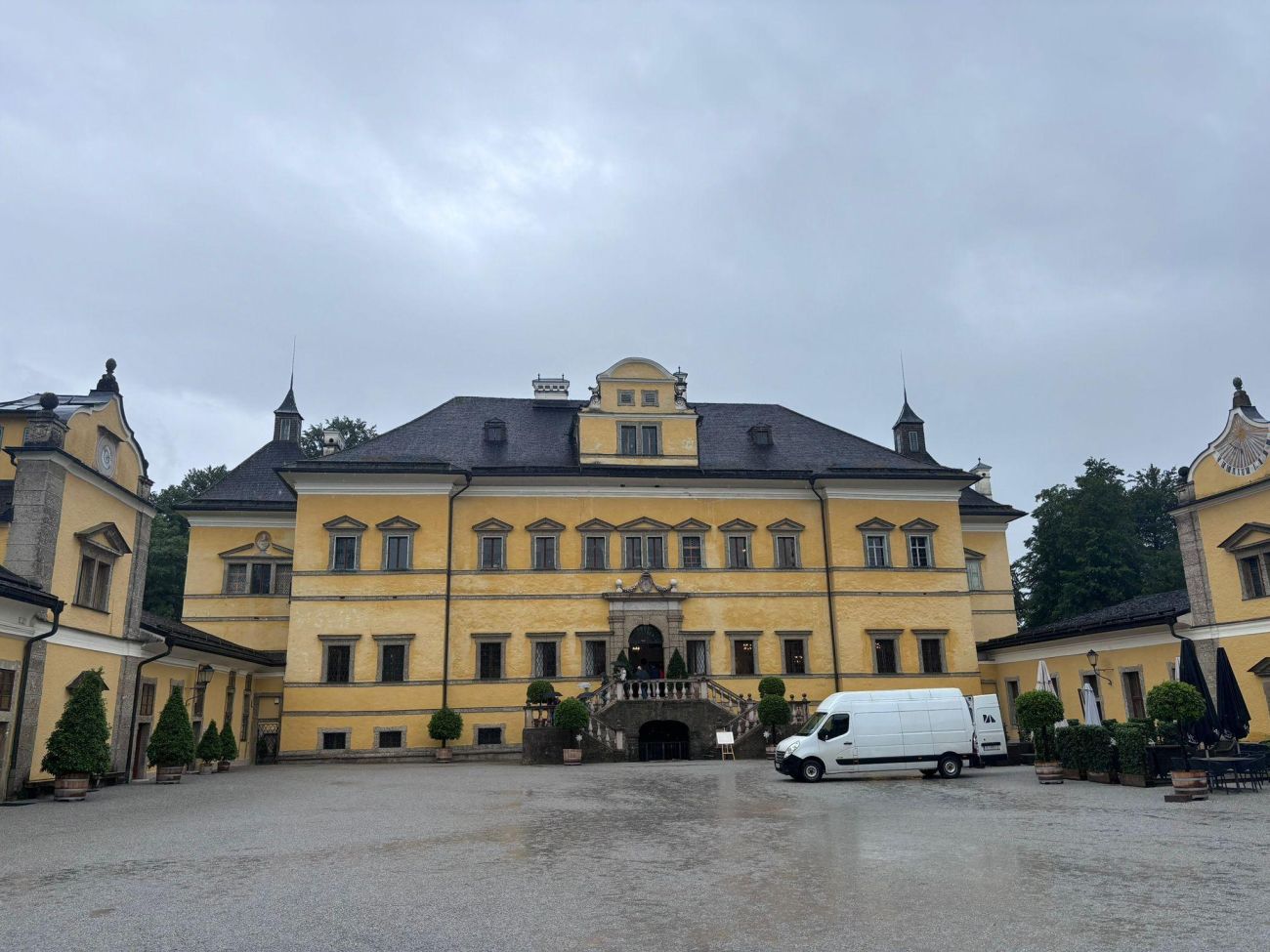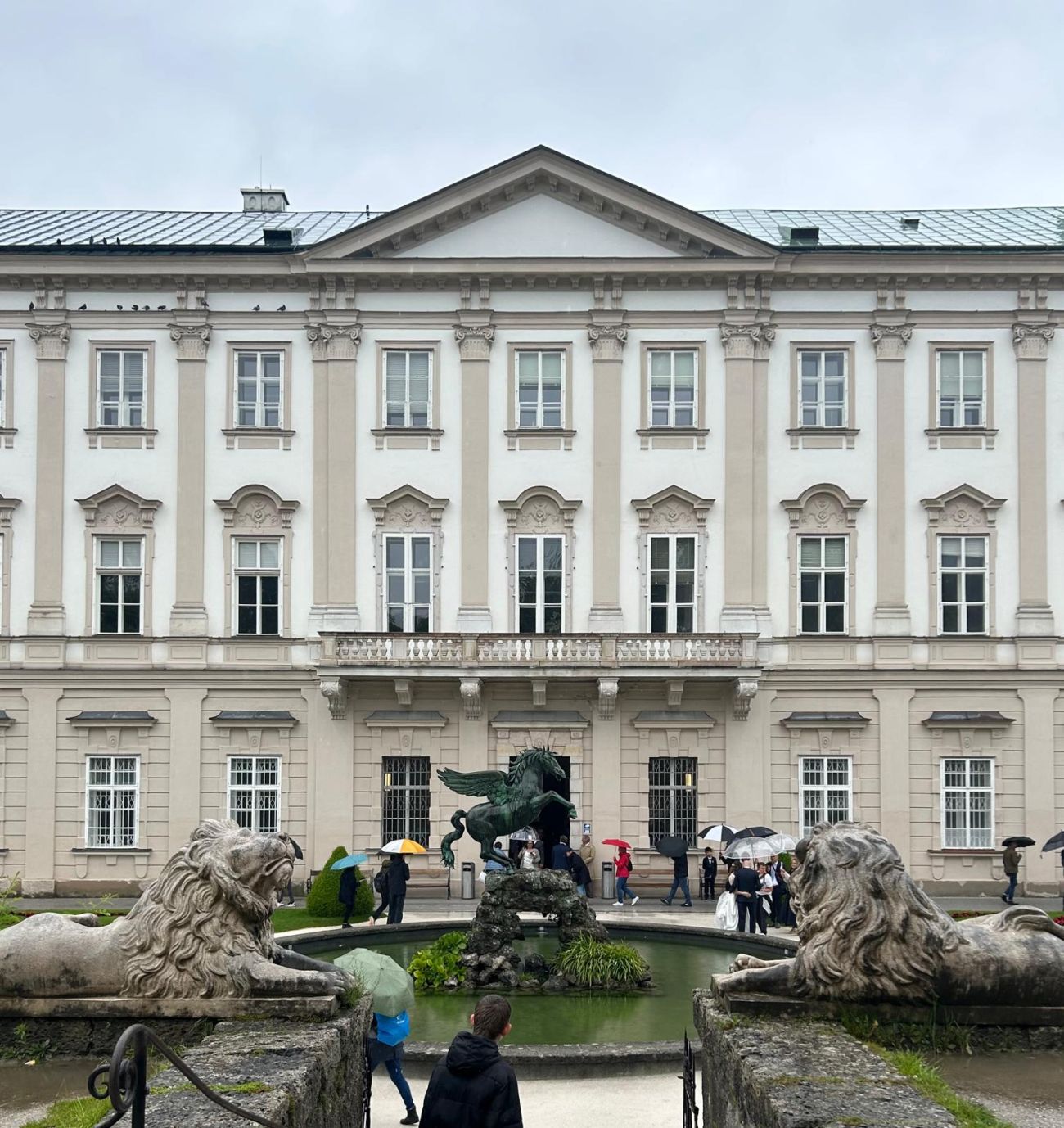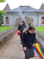 Den Abschluss machte ein Ausflug zum Schloss Hellbrunn am regnerischsten der drei Tage. Spätestens nach den Wasserspielen waren alle bis auf die Haut nass. Während man mit einem Audioguide durch die Parkanlagen schlendert und die verschiedenen Brunnen und mit Wasserkraft betriebenen Figuren und Karusselle beobachtet, kann es durchaus vorkommen, dass man plötzlich von einem Wasserstrahl überrascht wird. Kleine Düsen sind überall gut getarnt versteckt und die hinterlistigen Mitarbeiter warten nur darauf, bis sich jemand günstig positioniert. Das Ganze macht natürlich bei besserem Wetter auch mehr Spaß. Am Nachmittag wurde noch kurz dem Mirabellgarten und dem Großen Festspielhaus ein Besuch abgestattet, bevor es am Abend wieder zurück nach Niederösterreich ging.