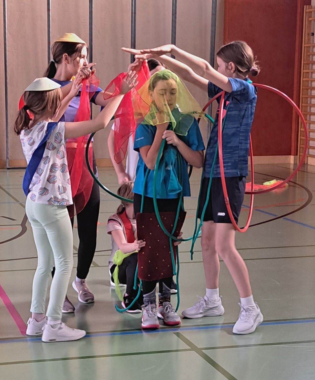 In der Vorweihnachtszeit wurde der Sportunterricht der ersten Klassen zu einem ganz besonderen Erlebnis. Unsere Mädchen zeigten ihre Kreativität und Bewegungsfreude, indem sie mit verschiedenen Gegenständen wie Bällen, Tüchern, Seilen und Hütchen zu stimmungsvollen Weihnachtsliedern tanzten und sich bewegten.