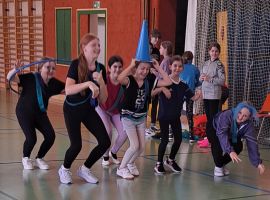 Mit viel Spaß und Begeisterung verwandelten sie die Sporthalle in eine Bühne voller Bewegung, Musik und weihnachtlicher Stimmung. Der fantasievolle Einsatz der Materialien und die fröhliche Atmosphäre brachten nicht nur die Schülerinnen, sondern auch die Lehrkräfte in Adventsstimmung. Eine sportlich-kreative Einstimmung auf das Weihnachtsfest, die allen viel Freude bereitete!