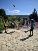 Danach durften alle rund 200 Kids ihr Talent beim Ausprobieren der leichtathletischen Disziplinen unter Beweis stellen, oder noch ausgiebig Volleyball-, Fußball-, bzw. Tennisspielen.