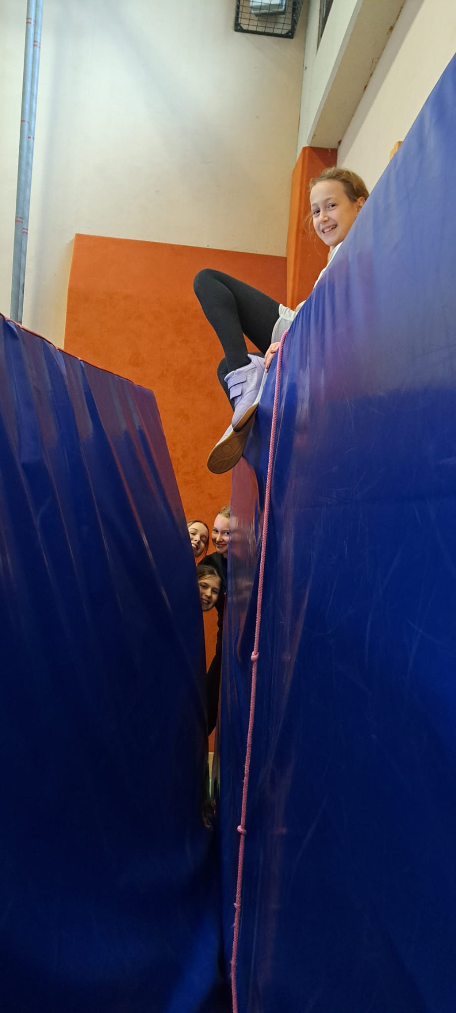 Unter dem Motto „Mut tut gut“ haben wir gelernt, wie man Risiken nicht vermeidet, sondern lernten damit umzugehen. Der Turnsaal verwandelte sich in einen Erlebnispark mit vielen verschiedenen Stationen. Jede Station hatte ein eigenes Hindernis, welches zu bewältigen war.